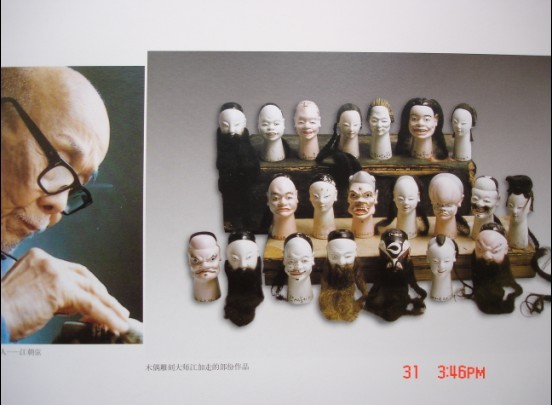 木偶头(傀儡头)是木偶艺术的角色头部造型。泉州木偶头雕刻源自木偶神像雕刻,是深受世人喜爱的民间艺术品。泉州历史上曾出现不少无名氏雕刻能手, 江加走是20世纪中叶一位裕后光前的雕刻艺术大师。