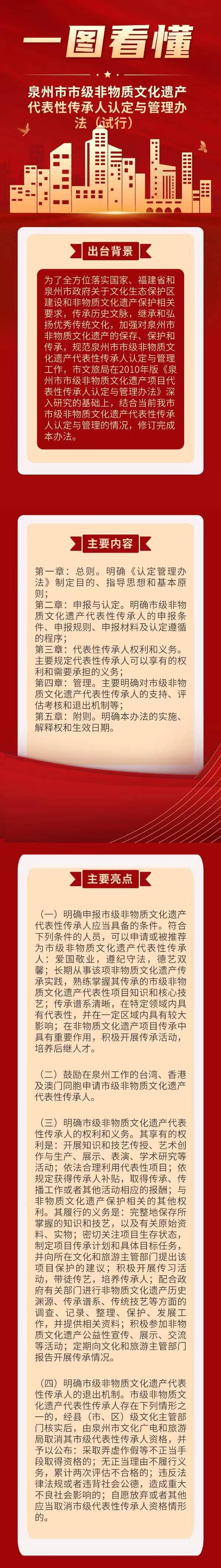 一图看懂《泉州市市级非物质文化遗产代表性传承人认定与管理办法(试行)》